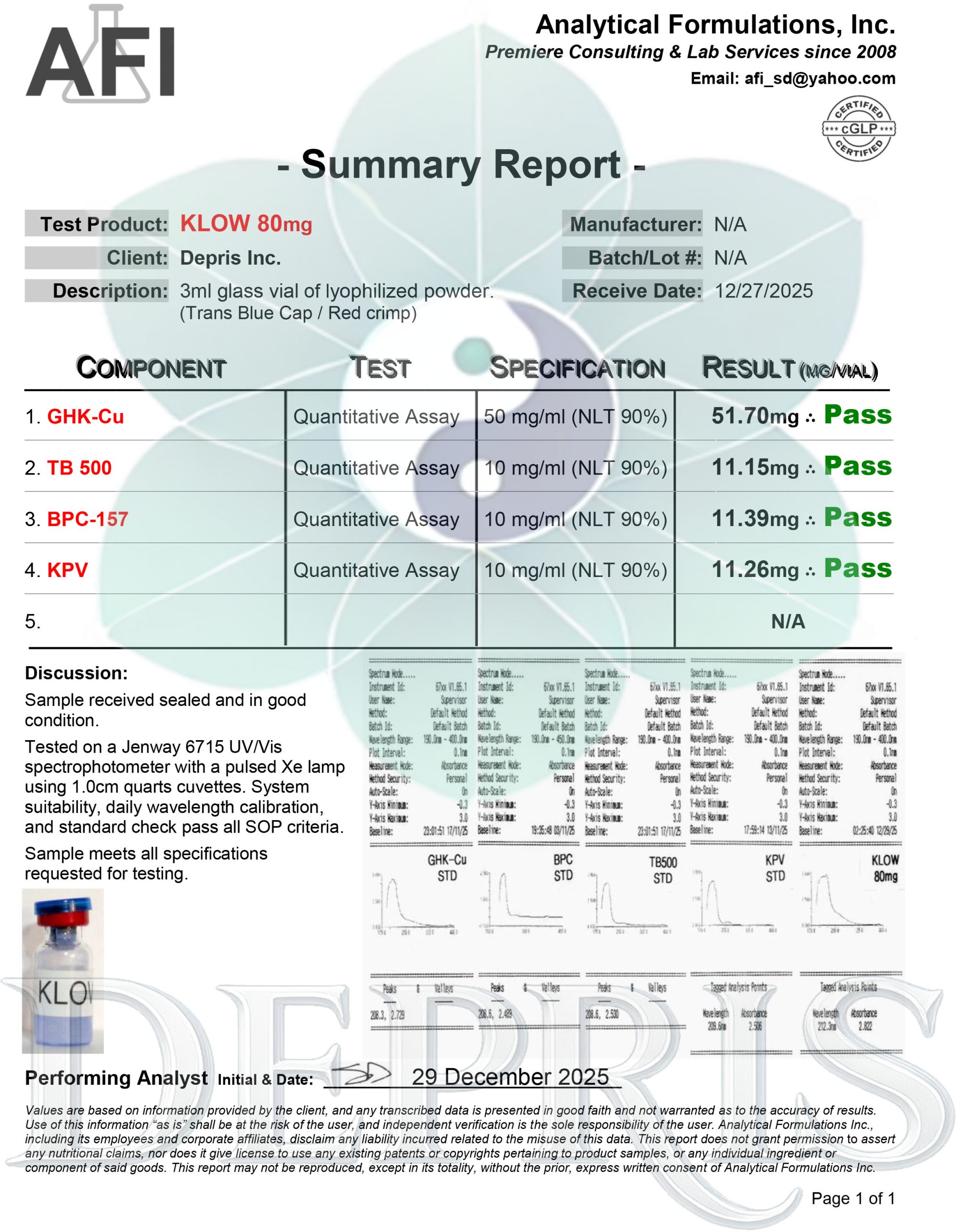 KLOW is a peptide blend. This is a blend of GHK-Cu 50 MG, BPC-157 10 MG, TB-500 10 MG, and KPV 10 MG in a single vial.